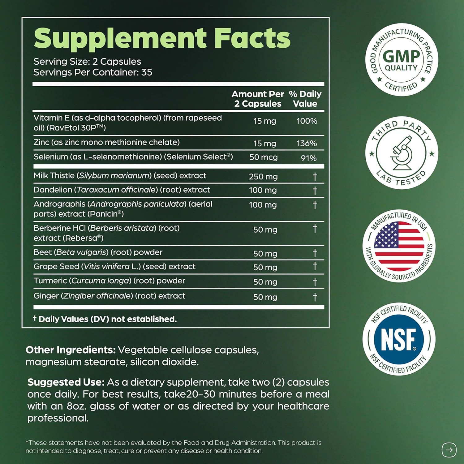 Ingredientes premium como cardo mariano, diente de león y remolacha equilibran enzimas hepáticas y promueven un hígado fuerte, sano y protegido.