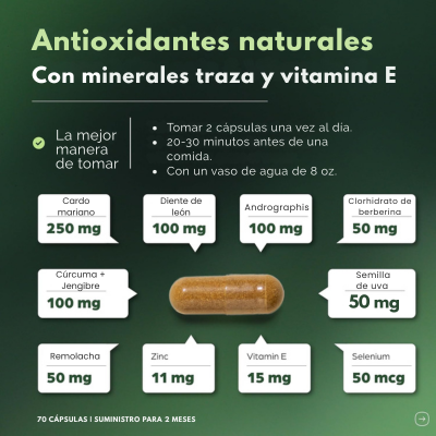 Es un suplemento natural elaborado con una fórmula 11 en 1 de hierbas, antioxidantes y minerales que apoyan la salud del hígado, la energía, la digestión y el bienestar general.